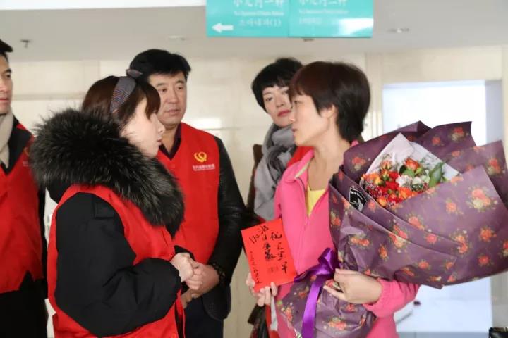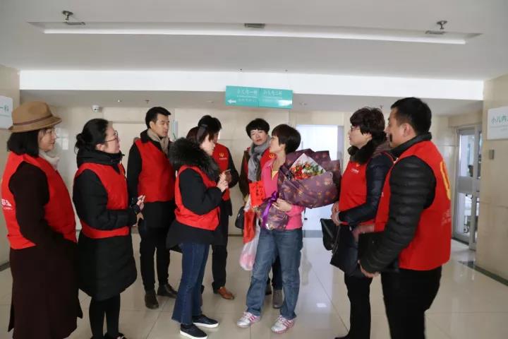 上午9點半,8名愛心成員手捧鮮花來到了兒童內(nèi)科病房探望于枬艷,并將一萬元的愛心善款送到了其母親邵士珂的手中。出于衛(wèi)生方面的考慮,愛心成員們并沒有進入病房,只是透過玻璃遠(yuǎn)遠(yuǎn)地為于枬艷送去他們的祝福。