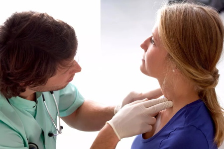 多數(shù)部位的淺表淋巴結(jié)可以通過觸摸進行自檢,如:頸部、腋窩、腹股溝的淋巴結(jié)。
